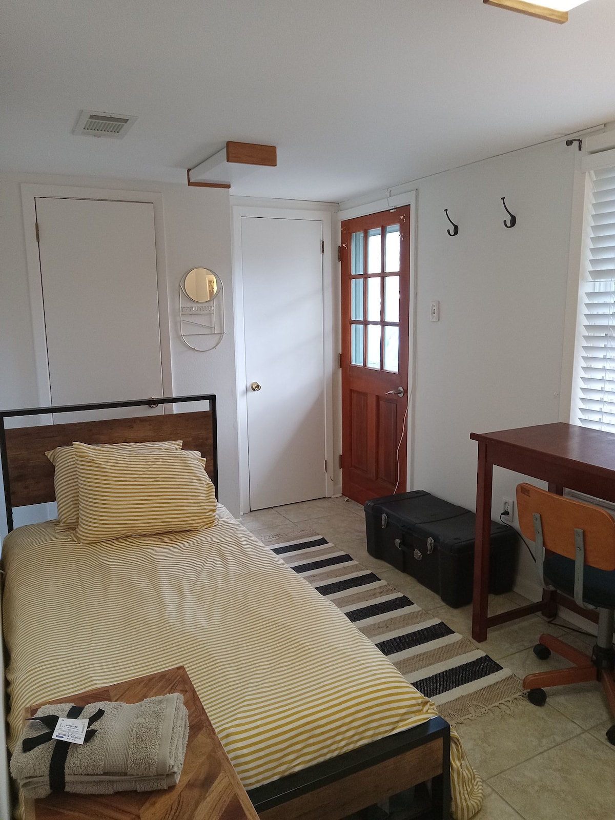 Questa è una suite per gli ospiti annessa alla nostra casa. Si trova in un quartiere tranquillo. Si trova a soli 10 minuti a piedi dalla biblioteca pubblica principale di Baton Rouge e dal giardino botanico. Questo spazio è perfetto per un massimo di 4 persone, in quanto è arredato con un letto matrimoniale e un divano letto. Questo alloggio Airbnb dispone di un frigorifero di grandi dimensioni, un angolo cottura con forno a microonde, una friggitrice ad aria, una pentola a cottura lenta, una macchina per il caffè (NON keurig), un tostapane e una macchina per waffle, un frullatore e una pentola per il riso. Il parcheggio è disponibile sul vialetto.