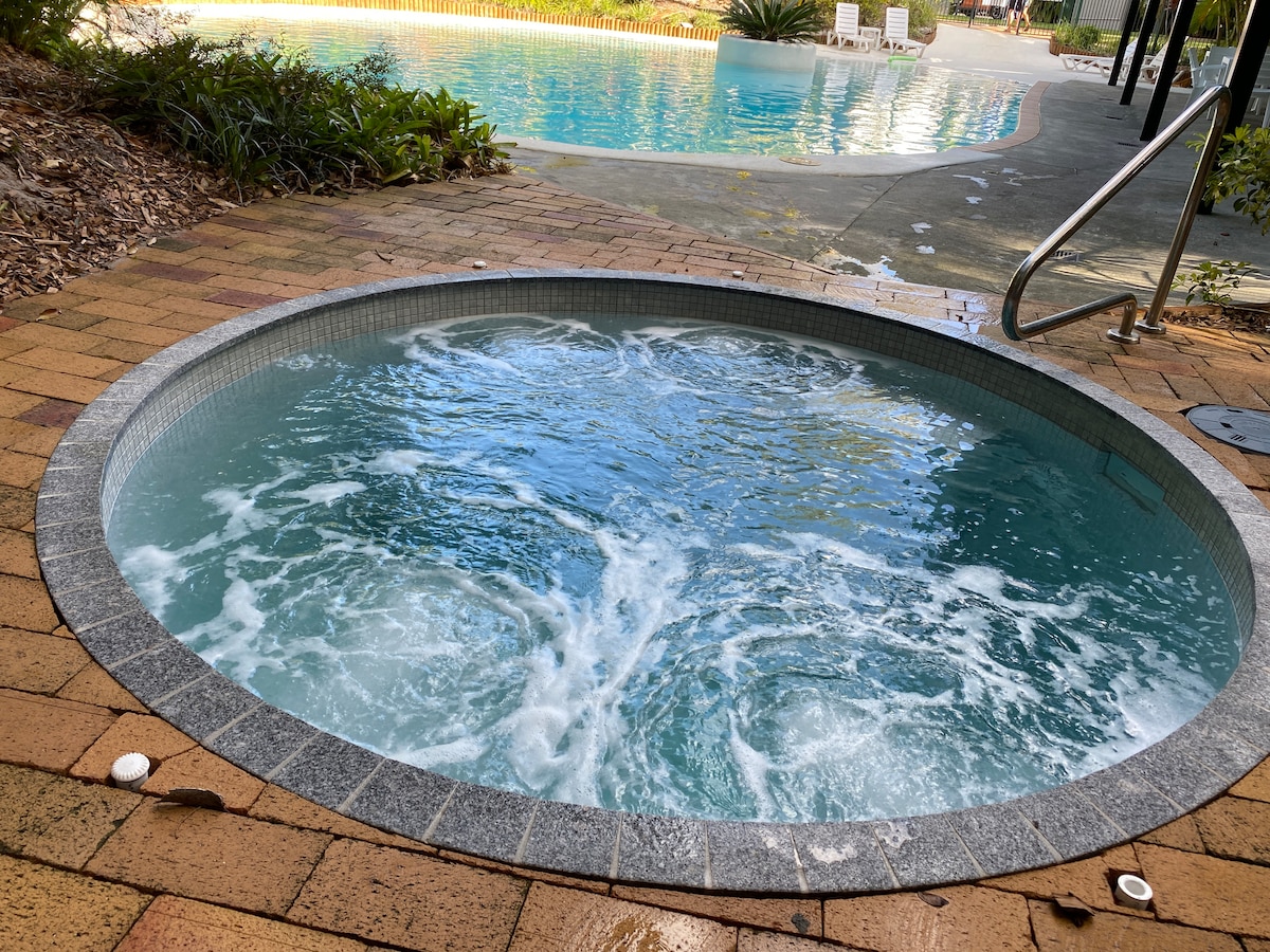 Rilassati in questo spazio tranquillo e rilassato con tutti i comfort moderni, come il check-in autonomo, aria condizionata, lavastoviglie, lavatrice/asciugatrice, 2 TV, Wi-Fi, forno a microonde, ecc. L'unità si trova nel resort Rainbow Shores che dispone di una vasca idromassaggio, due piscine e un campo da tennis. La spiaggia è a pochi passi attraverso il sentiero nel bush. Se ti piace l'avventura, puoi esplorare la vicina Fraser Island o fare un giro in 4x4 lungo la spiaggia fino a Double Island Point. Rainbow Beach ha molti ottimi ristoranti, alcuni con splendida vista sull'oceano.