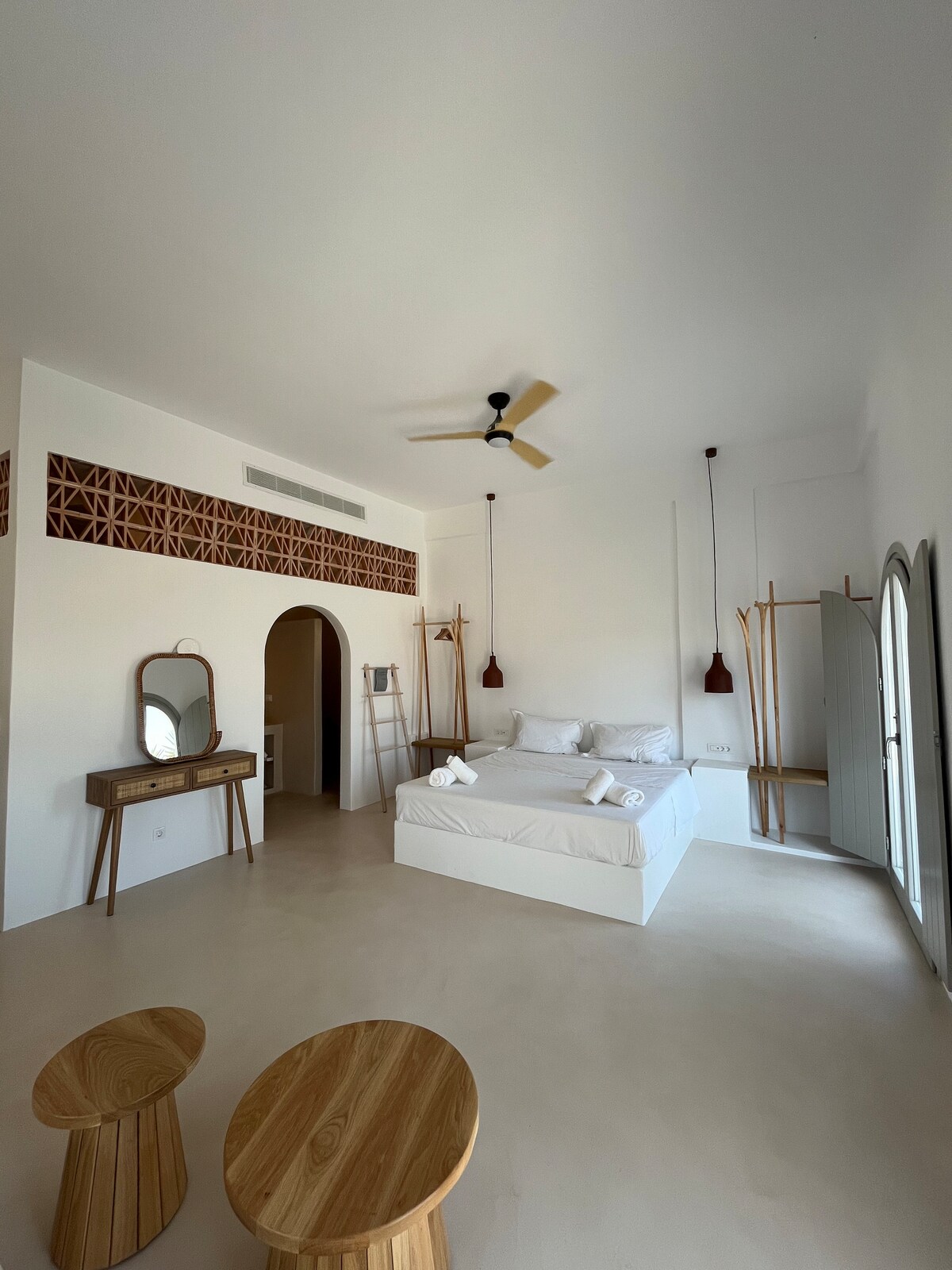 Ognuna delle nostre 10 suite di lusso è stata meticolosamente progettata per offrire un'oasi di tranquillità e comfort. Con un occhio attento ai dettagli, i nostri alloggi offrono una combinazione perfetta di eleganza contemporanea e autentico fascino greco. Sali sul tuo balcone o terrazza privati per goderti viste panoramiche mozzafiato, creando uno sfondo che ti lascerà a bocca aperta.