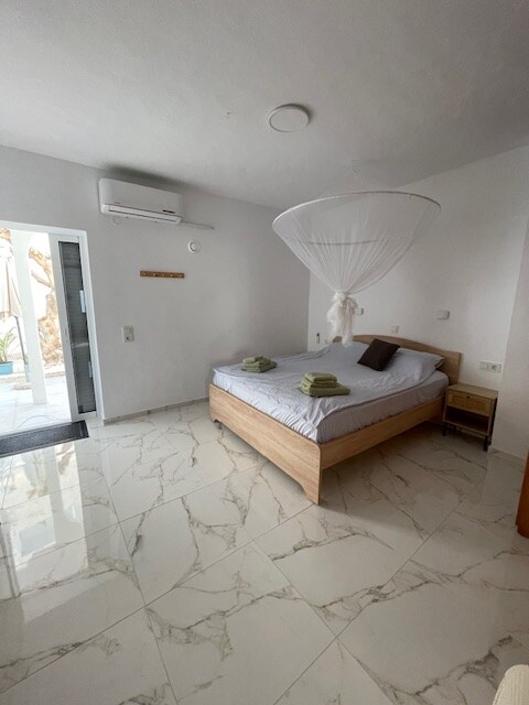 "Villa Athena" è composta da 5 appartamenti separati con una camera da letto al livello del giardino (piano terra) e si trova in una posizione privilegiata di fronte alla bellissima spiaggia sabbiosa di Tigaki. Ogni appartamento ha una camera da letto principale e poi la zona salotto con angolo cottura dispone di altri 2 letti.(C'è l'aria condizionata in ogni appartamento: è opzionale e se si decide di utilizzarla, è previsto un piccolo costo aggiuntivo al giorno). Ogni appartamento ha il suo bagno privato con doccia.