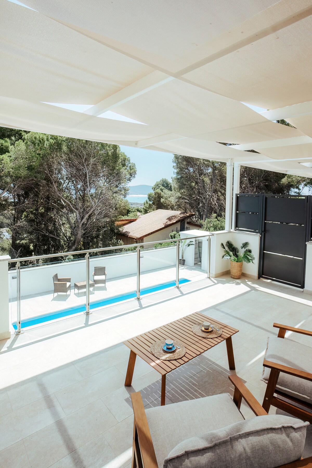 Shambala Villa - Shambala Duplex Terrace & Pool Bilocale accogliente e panoramico con terrazza privata, vista mozzafiato e doccia esterna. Una camera matrimoniale, bagno moderno e soggiorno con cucina. Perfetto per coppie in cerca di silenzio e relax, o famiglie con un bimbo piccolo. Piscina condivisa con vista, Wi-Fi, aria condizionata, lavatrice e lavastoviglie. A pochi minuti dalle spiagge di Porto Pino. Parcheggio non privato in strada.