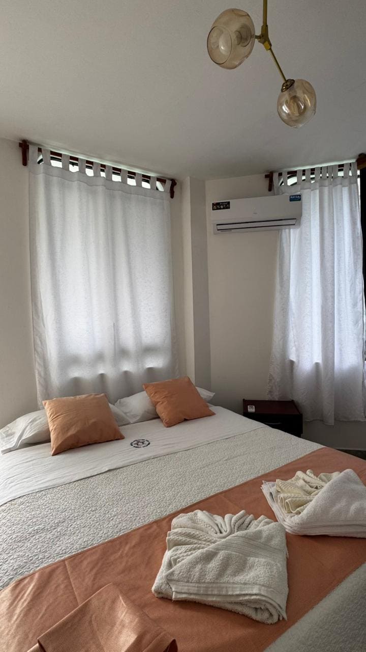 Goditi un soggiorno confortevole e rilassante in questa splendida stanza privata all'interno della nostra casa. - Camera: spaziosa, privata, illuminata, acqua calda, con bagno privato, wifi-Starlink, aria condizionata. - Zone comuni: cucina, patio, amaca, terrazza. - Posizione: Jeniffer Hostal, situato a Isabela Galápagos, Ecuador. Nel centro del paese di Puerto Villamil, a cinque minuti dalla spiaggia e vicino a ristoranti, caffè, operatori turistici, tra gli altri.
