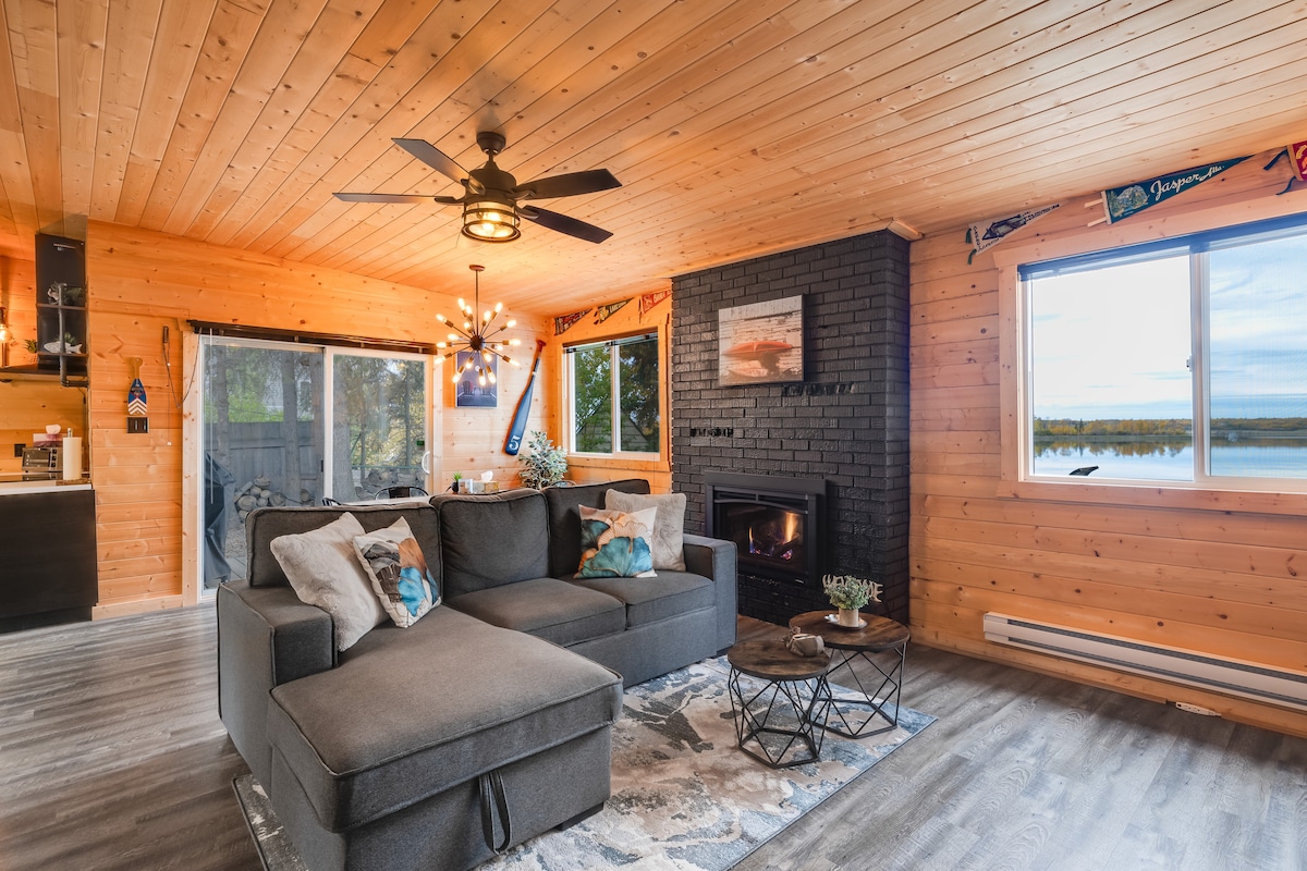 Un incantevole mix di pareti vintage anni '80 e pareti bianche ispirate all'oceano. 2 camere da letto e un soggiorno con divano letto. C'è anche una rimessa per barche molto carina che abbiamo convertito in una camera da letto. La maggior parte del tempo viene trascorso all'aperto con alcune delle migliori attività di pesca sul ghiaccio, motoslitta, canottaggio, quad, escursionismo, sci di fondo e ciaspolate che l'Alberta ha da offrire. Immergiti in una vasca idromassaggio per 6 persone con vista sul lago e le sue bellissime isole dopo aver girato in motoslitta la vasta serie di sentieri panoramici.