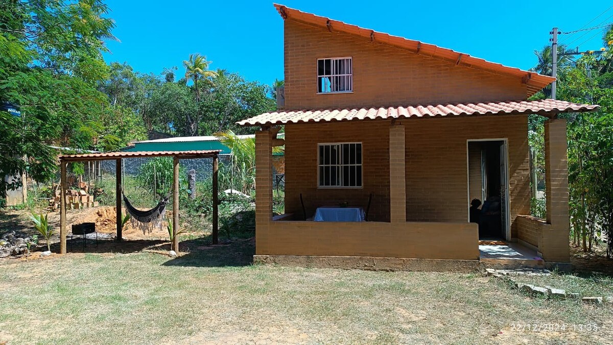 House in Vila do Diogo in the middle of the Atlantic Forest. The house has a country style and combines comfort and privacy on one of the most beautiful beaches on the north coast of Bahia. Ideal for those looking for a peaceful place close to nature and enjoy observing native animals in their natural habitat. The land has many fruit trees and space for a fire pit. The house is fully furnished ,wi-fi, fans and mosquito nets.