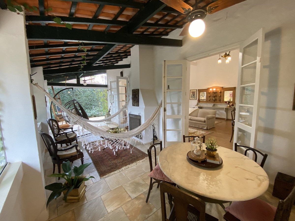 Casa di campagna affascinante e spaziosa, perfetta per famiglie (condominio chiuso), con 5 camere da letto e 4 bagni! 21 posti letto, di cui 4 matrimoniali (25 persone nei letti) Terreno di 1700 m2 Jacuzzi con idromassaggio 2 Caminetti (interno ed esterno) 2 barbecue Wi-fi 120MB Tavolo da ping pong Progetto dell'architetto Cláudio Ricci! Eccellenti aree di convivialità, sia interne che esterne. Se siete interessati, è possibile negoziare servizi di cucina e pulizia durante il soggiorno (chiedere in anticipo)