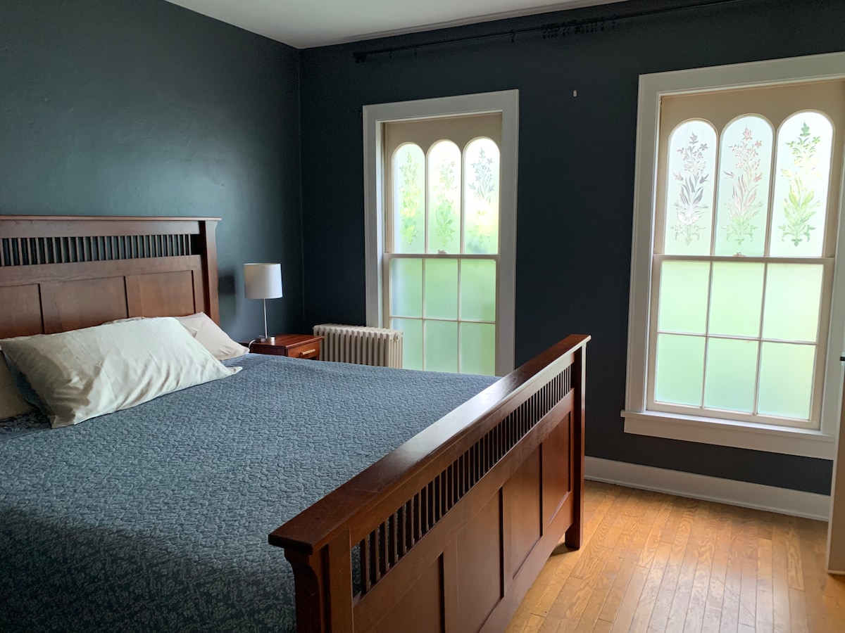 Questo accogliente appartamento con due camere da letto ristrutturato combina mobili moderni e vintage di metà secolo con un'atmosfera naturale e tipica dello stato di New York. L'elegante appartamento al primo piano di una classica casa di Ithaca, immerso nel quartiere di Fall Creek, dove si può andare ovunque a piedi. A pochi isolati dalle cascate di Ithaca, con facile accesso a Cornell, all'Ithaca College e al centro città. Ci siamo ispirati agli hotel boutique per progettare questo spazio, con bagno e cucina recentemente ristrutturati, elettrodomestici nuovi, smart TV e biancheria di lusso.