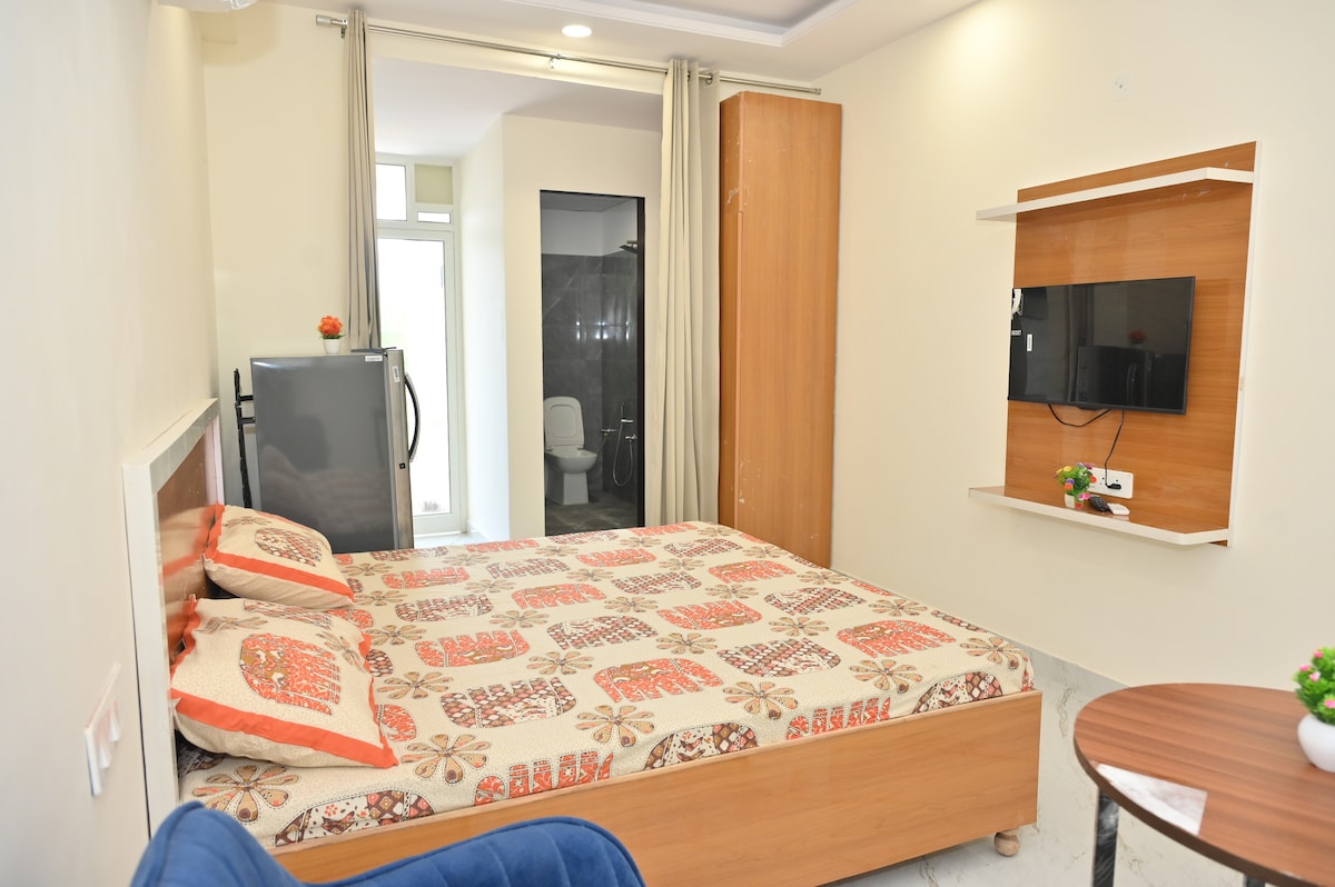 Benvenuti a The City Nook, un accogliente monolocale completamente arredato a Jagatpura, Jaipur. Ideale per viaggiatori singoli, coppie, ospiti d'affari o visite mediche. Situato vicino all'ospedale di Bombay e a DMart, con facile accesso ai principali punti della città. Cosa riceverai 🛏️ Letto matrimoniale Wi-Fi 📶 ad alta velocità e area di lavoro 🍳 Angolo cottura: frigorifero, bollitore, piano cottura a induzione, pentole 🛁 Bagno con acqua calda e prodotti essenziali ❄️ Aria condizionata 📺 TV Backup dell'🔌alimentazione Check-in ✅ autonomo tramite cassetta di sicurezza Giochi al🏋️ coperto e palestra 🅿️ Parcheggio Prenota il tuo soggiorno oggi stesso!