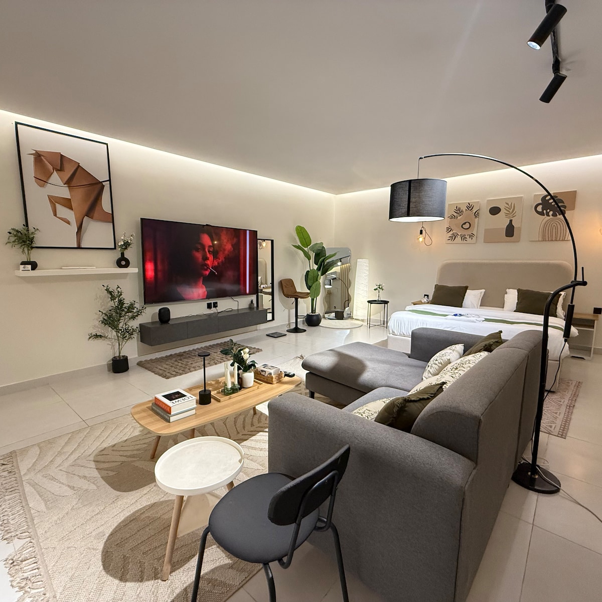 Monolocale moderno e silenzioso con Smart Entry e Smart TV 75