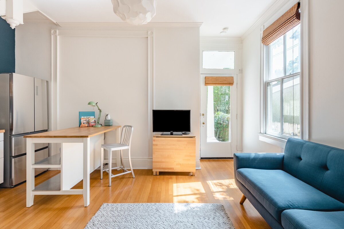Goditi il caffè del mattino nel verde patio con giardino di questo vivace cottage in stile creolo, immerso in un angolo ombreggiato. Prepara un pasto all'interno dei confini funky-moderni della cucina o passeggia tra gli interni colorati fino a trovare un posto al sole sul divano. Se preferisci dormire fino a tardi durante le vacanze, chiudi tutte le persiane in legno per creare un comodo bozzolo scuro in camera da letto e fingere che il resto del mondo si sia fermato mentre ti rilassi. Quando sarai pronto a uscire, avventurati all'esterno per esplorare l'architettura unica del Bywater e visitare i locali e i ritrovi del luogo! Questa struttura è un cottage in stile creolo adiacente a una tradizionale shotgun (occupata dall'host) su un terreno angolare ombreggiato nel quartiere storico di Bywater. Originariamente costruito nel 1800, ristrutturato nel 2007 e completamente rinnovato nel 2017, offre agli ospiti l'accesso completo e privato a questo cottage di oltre 56 metri quadrati, con 1 camera da letto, 1 bagno e una cucina completamente attrezzata. C'è un letto matrimoniale nella camera da letto e un divano componibile West Elm nel soggiorno che può ospitare comodamente un adulto. Vengono forniti lenzuola e cuscini aggiuntivi. TV a schermo piatto con DirecTV e lettore DVD. Lavatrice/asciugatrice in loco con forniture. Succo di pompelmo e satsuma appena spremuto dagli alberi nel cortile, quando è la stagione (ottobre - febbraio)! Gli ospiti possono sedersi nel cortile, con un patio privato appena fuori dalla porta del soggiorno. Viviamo in loco e la porta di casa nostra si trova proprio di fronte al soggiorno, o sulla terrazza vicino alla porta d'ingresso. Se hai bisogno di qualcosa, siamo felici di essere al tuo servizio. Altrimenti, ti lasceremo goderti in tranquillità lo spazio e il tuo viaggio. La struttura si trova nel quartiere storico di Bywater, un quartiere creolo noto soprattutto per l'architettura dai colori vivaci e per i membri creativi della comunità. Il quartiere vanta un facile accesso a ristoranti e intrattenimento, e una serie di punti di interesse si trovano nelle vicinanze, tra cui uno dei migliori brunch della città, un nano-birrificio e un wine bar con jazz dal vivo nel cortile più volte al giorno! Il sentiero di Crescent Park lungo il fiume dista due isolati ed è una bella porta d'accesso al Quartiere Francese. Il sentiero del Crescent Park, lungo il fiume Mississippi, dista due isolati dalla casa e offre un facile accesso in bicicletta/a piedi/in sedia a rotelle al mercato francese (a circa 2,4 km) e al resto del quartiere francese (Jackson Square dista circa 3,2 km dalla casa). Diverse linee di autobus si trovano a 2-4 isolati dalla casa, tra cui la linea 5 a due isolati di distanza, che ti porta al quartiere. La linea del tram Rampart-St. Claude si trova a circa 2,6 km di distanza, all'incrocio tra St. Claude e Elysian Fields. Diverse aziende locali offrono il noleggio di scooter e biciclette a meno di 3 km dalla casa, e una stazione di bike sharing (Blue Bikes NOLA) si trova dietro l'angolo. Uber/Lyft/car pooling sono prontamente disponibili, in genere in 5 minuti o meno nella maggior parte degli orari del giorno, e costano circa 7-12 $ per il Quartiere Francese/CBD (o Central Business District, come noi di New Orleans chiamiamo il nostro centro), a seconda del traffico, dell'ora del giorno, del punto di arrivo esatto, ecc. Se guidi il tuo veicolo, app come "Spothero" ti aiuteranno a trovare e confrontare le opzioni di parcheggi privati o a pagamento e gli spazi presso la tua destinazione. Il parcheggio su strada è in genere abbastanza da trovare e non è richiesto alcun permesso/non esistono restrizioni di tempo. Il J&J's Sports Bar si trova dall'altra parte della strada. Anche se può essere ottimo per guardare una partita nelle vicinanze o per un drink prima di andare a letto, a seconda del giorno, può anche creare rumore di conversazione fino alle prime ore del mattino. In camera da letto è presente un generatore di rumore bianco, per chi ha il sonno leggero. Numero di licenza a breve termine della municipalità di New Orleans/Tipo/Scadenza: 17STR-16097/Accessorio STR/16 agosto 2018