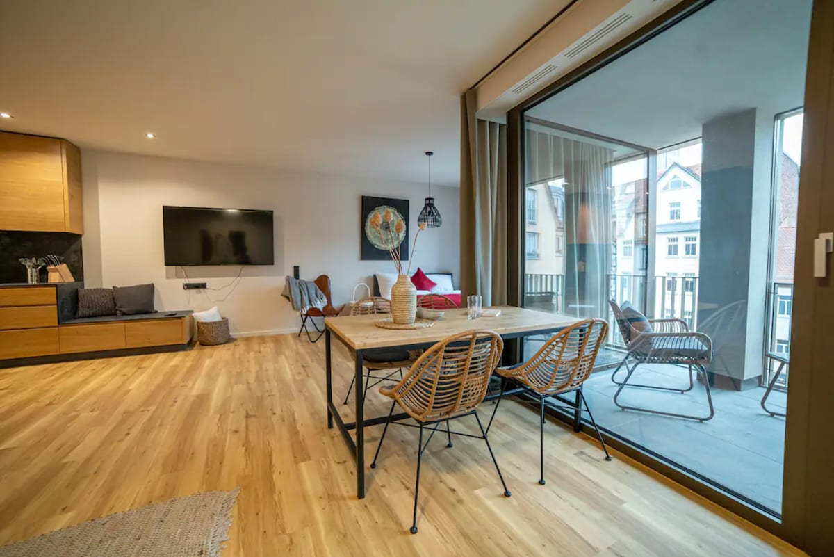 Goditi un'esperienza elegante in questo alloggio in posizione centrale. Sull'ampio terrazzo puoi concludere la giornata con la tua famiglia o gli amici. Hai a disposizione un grande letto a molle e un divano letto. L'attrezzatura permette anche soggiorni più lunghi. Una cucina ben attrezzata non lascia spazio a nulla. Il centro della città è facilmente raggiungibile in 5 minuti a piedi.