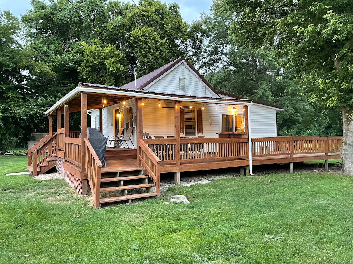 Goditi la vita di campagna nella zona rurale di Greene Co nella nostra baita situata nella nostra fattoria. Un ottimo posto per una vacanza! Dispone di 2 camere da letto, 2 bagni, cucina, sala da pranzo, soggiorno, lavanderia, portico e braciere. Ammira il campo per una splendida alba. In una notte limpida, le stelle sono incredibili! Goditi la natura e fai una passeggiata lungo il nostro torrente. Trascorri un po' di tempo nella nostra cittadina nei nostri negozi e ristoranti locali.... Viviamo in campagna, tra Carrollton e Jerseyville. (Non c'è WiFi.)