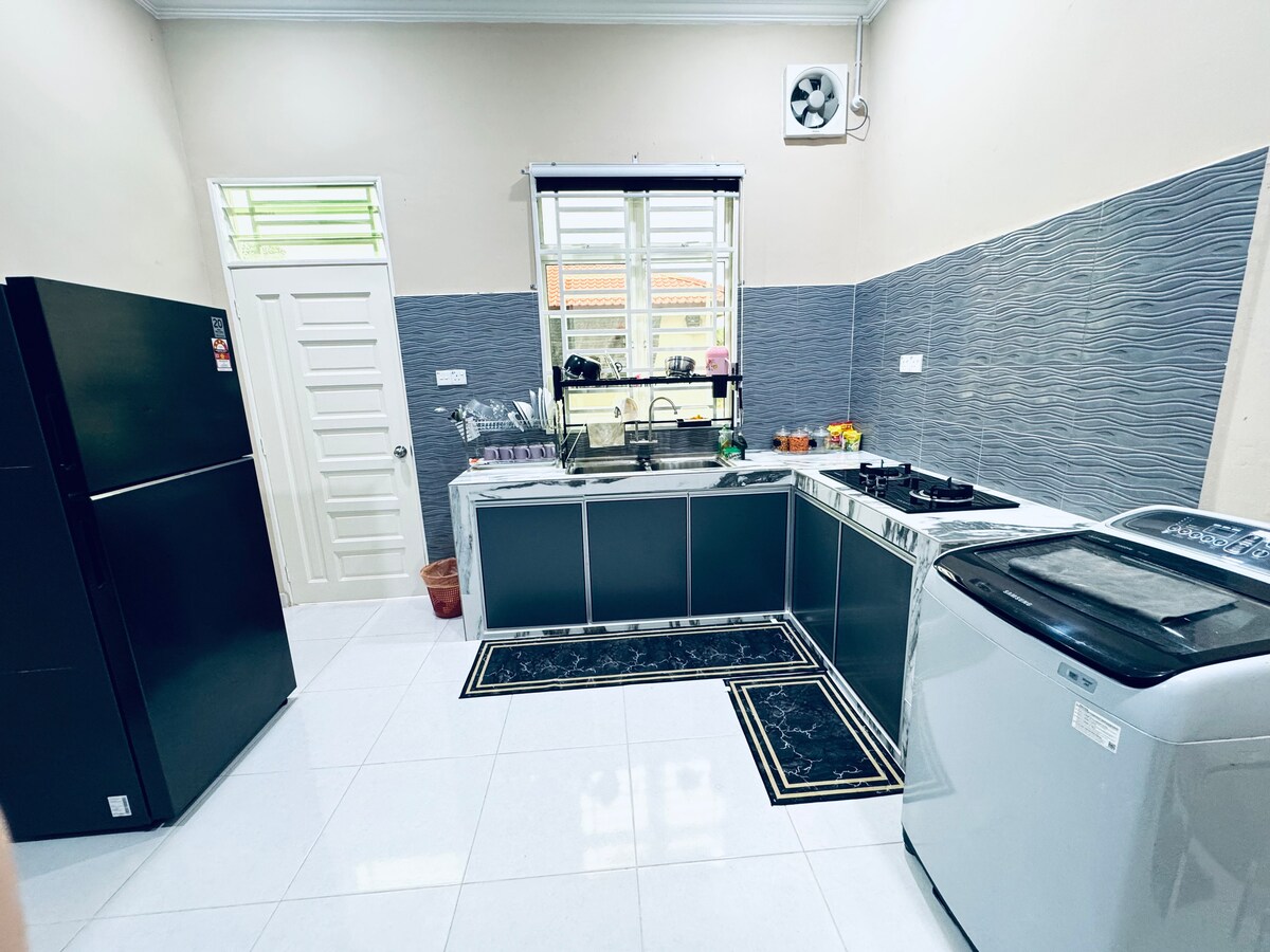 🏠 3 camere da letto 2 bagni (1 camera con aria condizionata e ventilatore, 2 camere con ventilatore) ✅Facilità di lavaggio in lavatrice Facilità ✅di accesso Sono disponibili ✅ferro e asse da stiro ✅TV, WIFI ✅NetFlix Adiacente / Nelle vicinanze: 📍1 minuto da MRSM Besut 📍A 5 minuti da Kampung Raja A 📍6 minuti dal campus IPG Sultan Mizan Besut A 📍7 minuti dalla spiaggia di Bukit Keluang A 📍8 minuti dal Bukit Bubus Paragliding Park A 📍8 minuti dall'UNISZA Kampung Tembila 📍13 minuti da Jeti Kuala Besut (per Stopover Island, Redang Island)