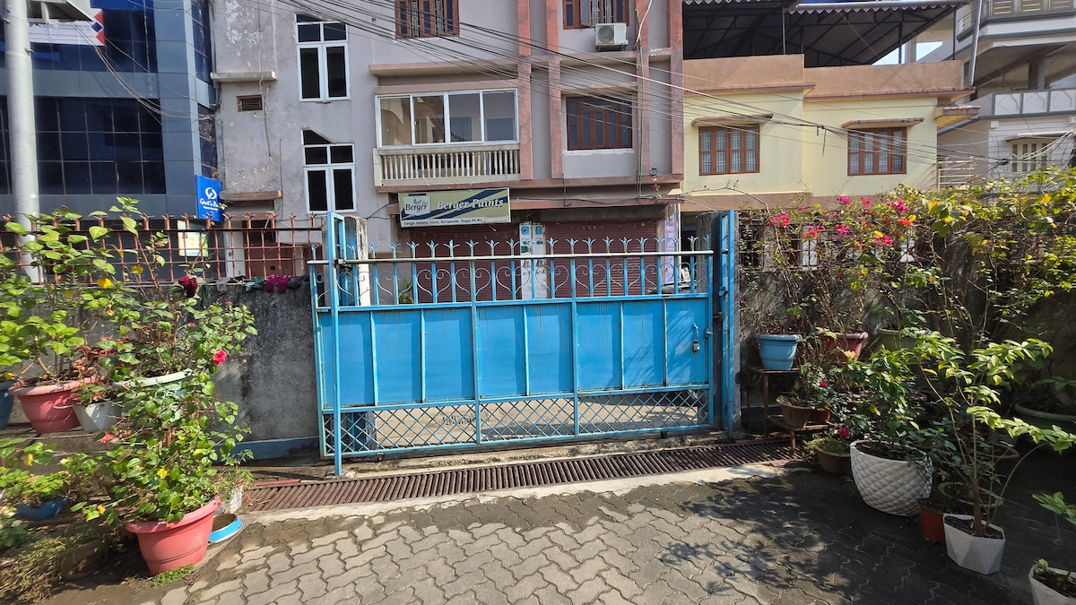 A private studio room in a safe house located about 100 meters south from the east-west highway. This property is within walking distance from Mukti Chouk (center). The building is on west-south direction from Birtamod Western Bus Stand. This house is very near from Birta City Hospital, Birtamod Eye Hospital, Birtamod Children Hospital, Manakamana College. Paved roads reach the house. There is also Hanumaan Temple just nearby. There are lots of groceries, pharmacies, restaurants & shops nearby.
