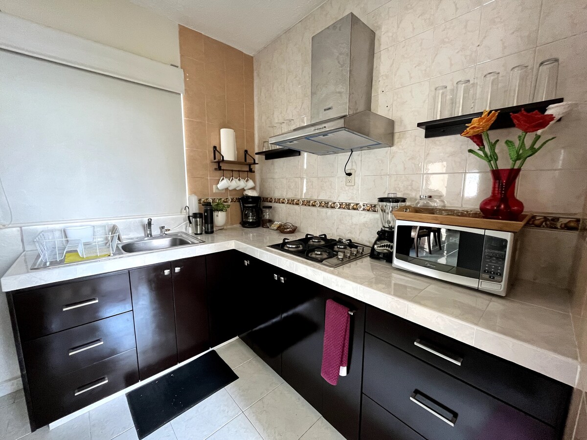 Bellissimo appartamento arredato, al secondo piano, completamente climatizzato e attrezzato in un complesso privato con piscina e sorveglianza, garage 1 auto, 2 camere da letto con aria condizionata e TV, soggiorno-sala da pranzo, zona lavanderia con lavatrice e asciugatrice, cucina attrezzata con fornelli, frigorifero, forno a microonde e utensili da cucina a Coatzacoalcos, Ver. di fronte a Plaza Forum.