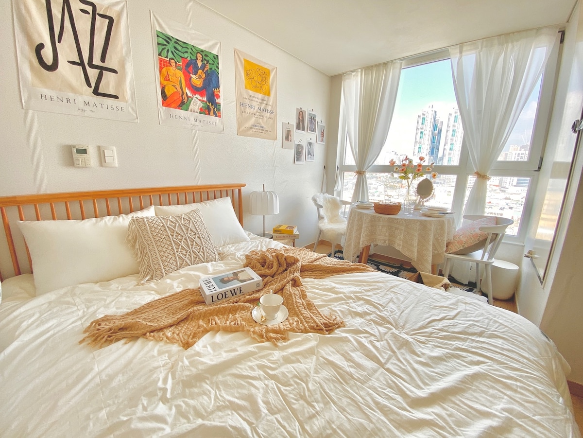 [스테이 하늘]햇살가득/커플&가족여행/연지공원/봉리단길/무료주차/경전철1분/2~6인
