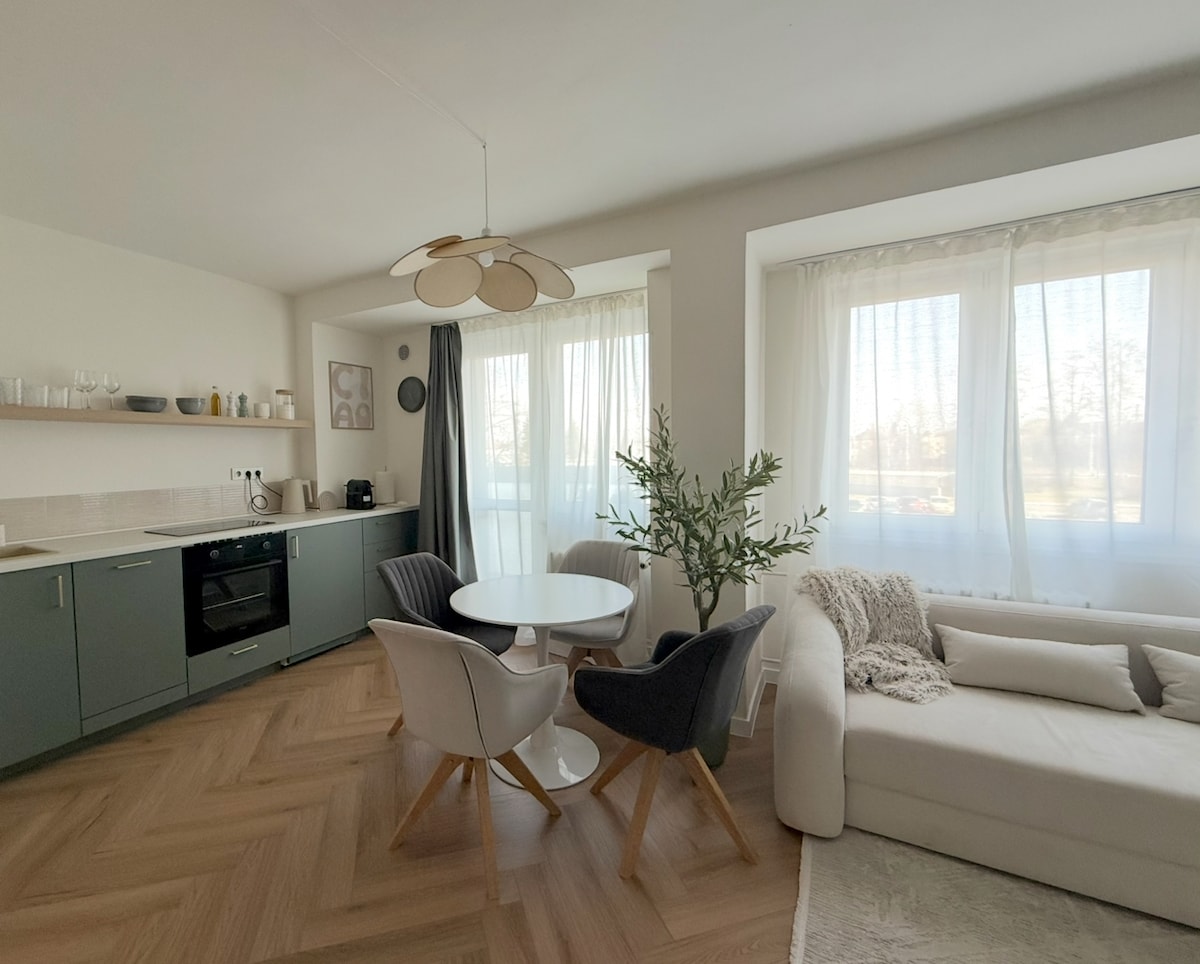 🌿 Concediti un soggiorno in un moderno appartamento sintonizzato con piacevoli tonalità verdi e goditi un'ottima colazione al bistrot OLLIES ogni giorno! 🛌 L'appartamento è l'ideale per 1–4 persone. È presente un grande letto (180×200 cm) con materasso di qualità e divano letto (140 cm), che, quando aperto, mette a disposizione una zona notte pianeggiante e confortevole per un massimo di 2 persone. 🍳 La colazione include: cibo per la colazione, caffè o tè e succo di frutta fresco a persona.