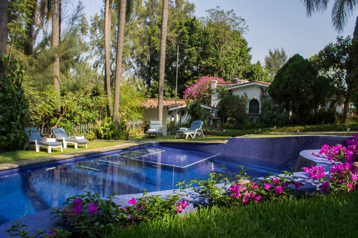 Casa esclusiva: con sicurezza e totale privacy. 2.000 mt2 di Jardín, piscina, campo da tennis. L'unico rumore è quello degli uccelli e del fiume in fondo al burrone. Servizio di pulizia 7 giorni su 7 dalle 9:30 alle 17:30 Tra cui la domenica. Luoghi di interesse a Morelos: Palacio de Cortes, Cattedrale, Jardín Borda, Xochicalco, Tequesquitengo, Tepoztlán, Las Estacas, Jardines de Mexico, Las Grutas de Cacahuamilpa, Taxco, Teopanzolco, Hacienda de Cortes, Hacienda San Gabriel, ...