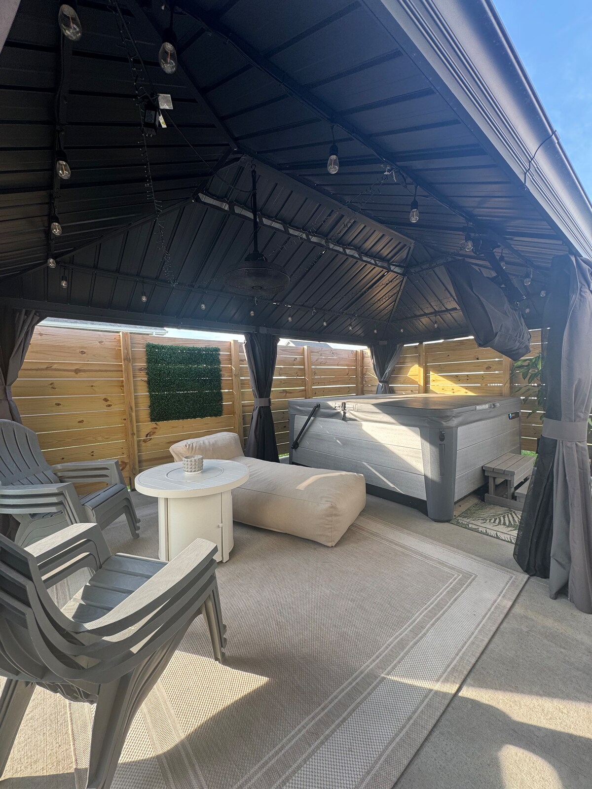 Questa confortevole casa di periferia, che può ospitare 12 persone, dispone di 4 camere da letto, 7 letti e 3,5 bagni, e offre una nuova vasca idromassaggio con altoparlanti Bluetooth e un cortile recintato. Il seminterrato dispone di un tavolo da hockey da tavolo, un divano letto, poltrone reclinabili e una zona cucina separata con un nuovo mini frigo, per rilassarsi giorno e notte con la famiglia. Nelle zone giorno sono disponibili il wifi in fibra e smart TV per godersi qualsiasi tipo di intrattenimento. Questa casa è il luogo ideale per riunirsi.