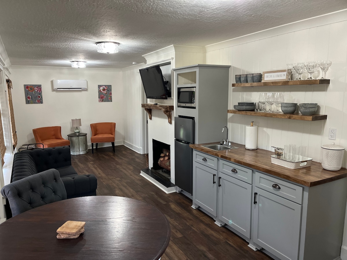 Experience the only ground-floor access in downtown Laurel—no steps, just effortless comfort! This beautifully furnished retreat features a plush king bed, granite countertops, a cozy fireplace, and a handicap-accessible shower. Walk to top dining, shopping, and attractions while enjoying front-row access to parades, festivals, and events. Whether you're here to relax, explore, or celebrate, this prime location puts you in the heart of it all. Book now for an unforgettable stay!
