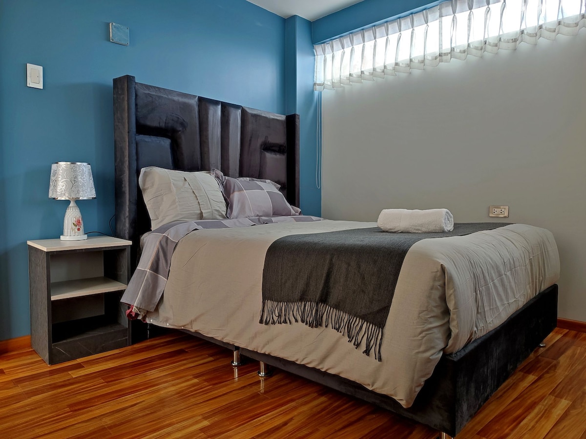 Appartamento moderno e tranquillo situato nella zona più sicura del centro città di Juliaca, di fronte a Real Plaza,con tutti i comfort per rendere il vostro soggiorno un'esperienza confortevole e calda, in appartamento con 1 camera da letto con letto matrimoniale e materasso ergonomico in memory foam per un miglior riposo, dispone inoltre di una smart tv da 65"con internet ad alta velocità, 1 soggiorno con vista per apprezzare tramonti, cucina attrezzata, bagno e doccia con acqua calda 24h.