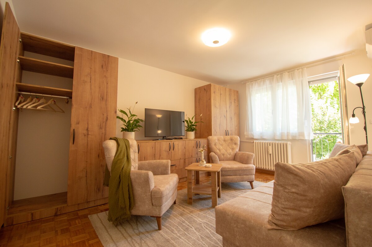 This lovely cozy and fully equipped apartment is located in the quiet and friendly neighborhood, within the walking distance from the city center. It is East-oriented so you can sit back at the balcony and enjoy morning Sun while planning your daily tours around this beautiful city. Apartment is on the 4th floor of a brand-new building. There is an elevator. Public parking is available around the building (need to be paid). Apartment is available both for short and longer accomodations.