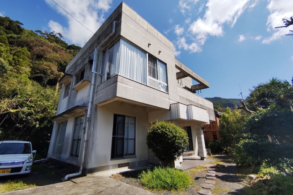 Ocean view! Beach (1 min) - private vibe. Enjoy Sakurajima, Kinko Bay, & Chiringashima views from the living room. Exclusive private house (1 group/day) for ultimate relaxation. Fall asleep to the sound of waves – we're right by the sea in Ibusuki! Pets welcome. Retro house, quiet. Car needed (5-6 parking/20 bikes). Garden BBQ. Free WiFi. Massage chair. Washer/dryer. Full electric kitchen, dishwasher, hot/cold water. 5 free bikes. Fishing: beach (sillago), rocks (rockfish), near octopus.
