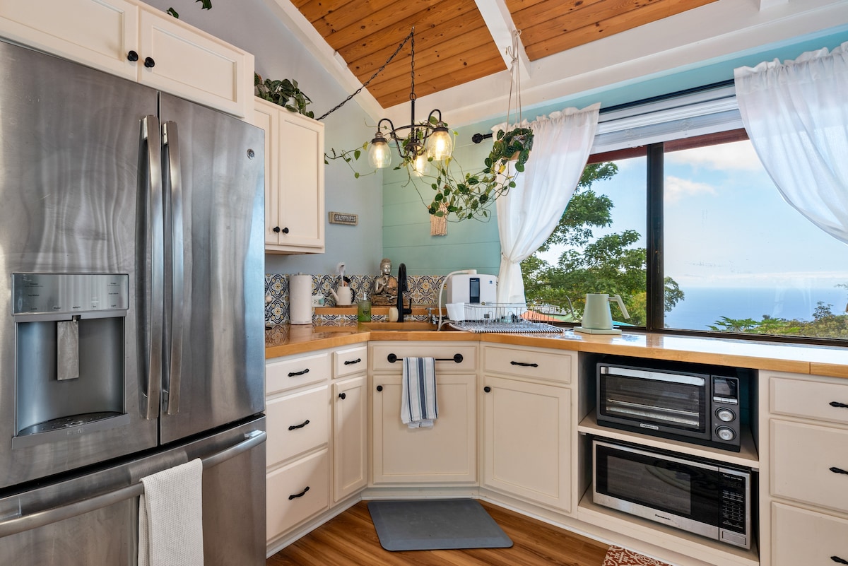 Progettato da Twin Islands Interior Design Group - Fuggi a Big Island e concediti il paradiso tropicale delle Hawaii con questo incantevole alloggio Airbnb con 1 camera da letto e 1 bagno. Goditi la vista sull'oceano dal portico ventilato e dormi tranquillamente in un comodo letto matrimoniale. L'appartamento dispone di aria condizionata; le serate e le mattine sono fresche grazie all'altitudine. Trascorri pomeriggi pigri sul portico e goditi l'energia della giungla. Scopri la magia di Big Island Kealakekua!