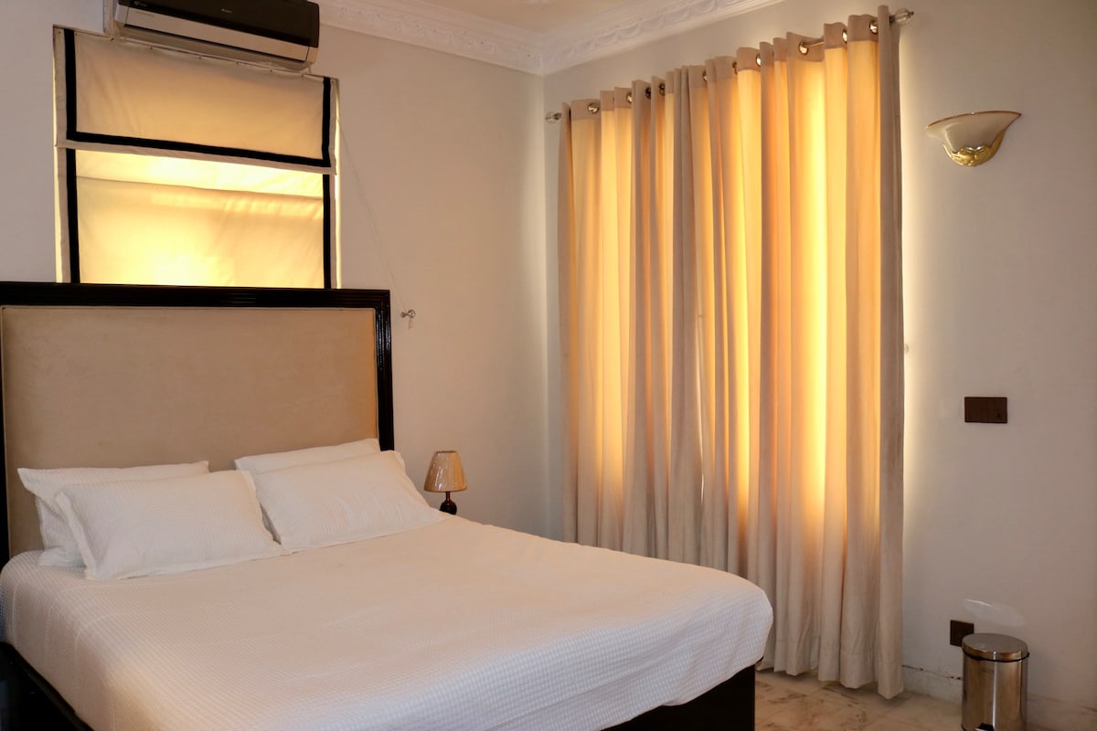 Il nostro appartamento è un paradiso di comfort e lusso. Situato nel cuore di Lahore, l'Hayyat Luxury Hotel Apartments è un'oasi di comfort e lusso. Il nostro appartamento vanta un'ampia zona giorno completa di smart TV e zona pranzo. La nostra cucina completamente attrezzata offre tutti i comfort di una casa, tra cui forno, forno a microonde, tostapane e bollitore. Concediti un bagno rilassante nel bagno privato, completo di articoli da toeletta gratuiti.