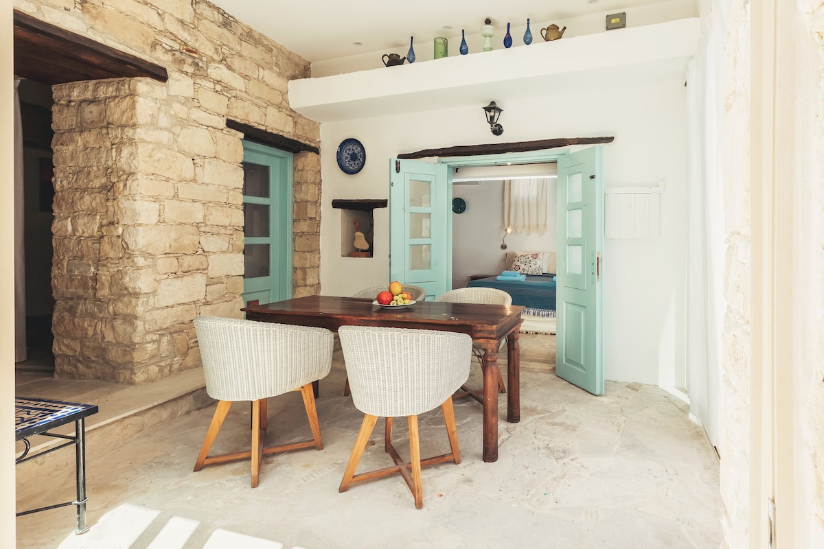 Appartamento indipendente con una camera da letto al 1° piano di una tradizionale proprietà in pietra, situato in una strada tranquilla alla periferia del villaggio. Si affaccia su campi di ulivi e carrube e su imponenti fichi d'India, con una splendida vista sulle montagne che offre uno sfondo spettacolare per favolosi tramonti. Molti uccelli migratori e autoctoni ci onorano con la loro presenza, dalle rondini migratrici e dai gruccioni ai fringuelli, upupa, rigogoli, gheppi, colombe e altro ancora.