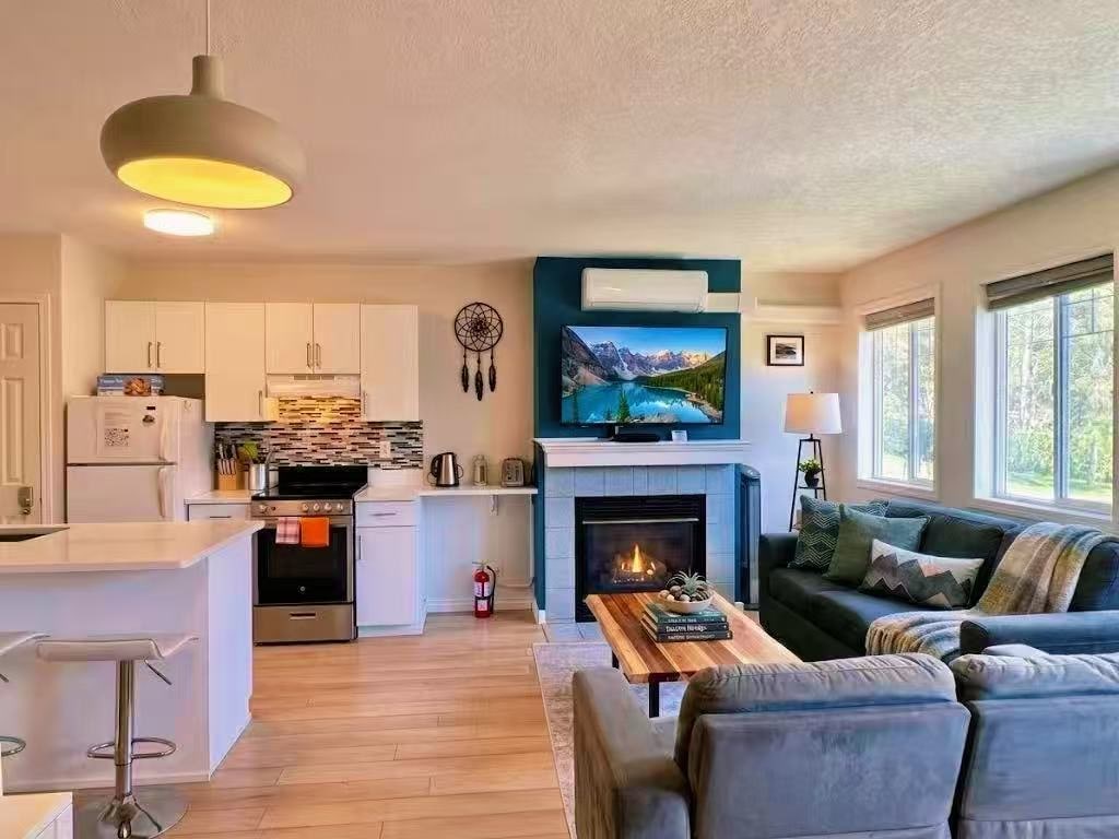 Ti diamo il benvenuto nella tua vacanza tranquilla ed elegante a Canmore! Questo lussuoso appartamento si trova a soli 10 minuti a piedi dal centro città, con negozi, ristoranti e sentieri a portata di mano. Rilassati accanto all'accogliente camino in pietra, sprofonda in un lussuoso letto king-size o accogli ospiti extra sul divano letto di alta qualità. Goditi uno spazio abitativo luminoso e arioso, una cucina completamente attrezzata, una lavanderia interna, un parcheggio gratuito e una connessione Wi-Fi ad alta velocità da 1 GB. Ideale per l'avventura o il relax sulle Montagne Rocciose.