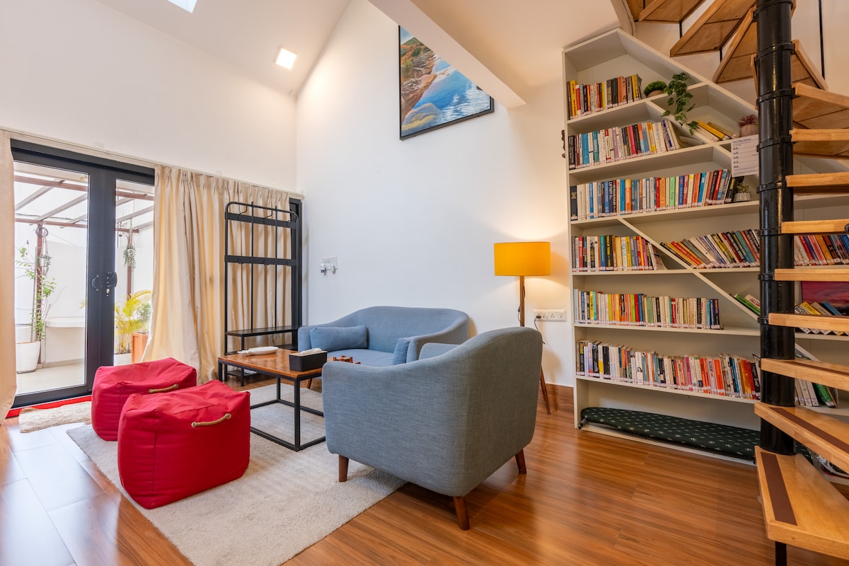 Scopri questo loft soleggiato nel cuore di Bangalore. Dotato di lucernari che inondano lo spazio di luce naturale, una biblioteca splendidamente arredata per trascorrere momenti di serena lettura e un ampio patio per rilassarsi all'aperto. Che tu sia in città per lavoro o per piacere, il nostro loft offre un mix perfetto di lusso e posizione, garantendo un soggiorno memorabile in uno dei quartieri centrali di Bangalore.