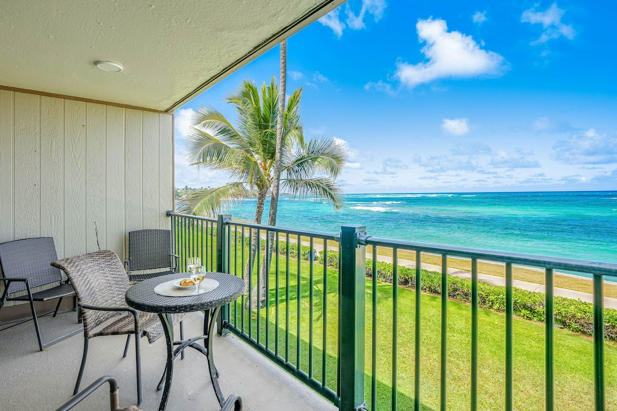 Enjoy the comfort of our oceanfront remodeled one-bedroom, one bath condominium. Imagine being 75 steps away from the Pacific Ocean on the east shore of Kauai in the historical town of Kapa'a. From your private lanai with incredible views of the ocean, you can watch the sunrises and listen to the soothing sounds of the ocean.