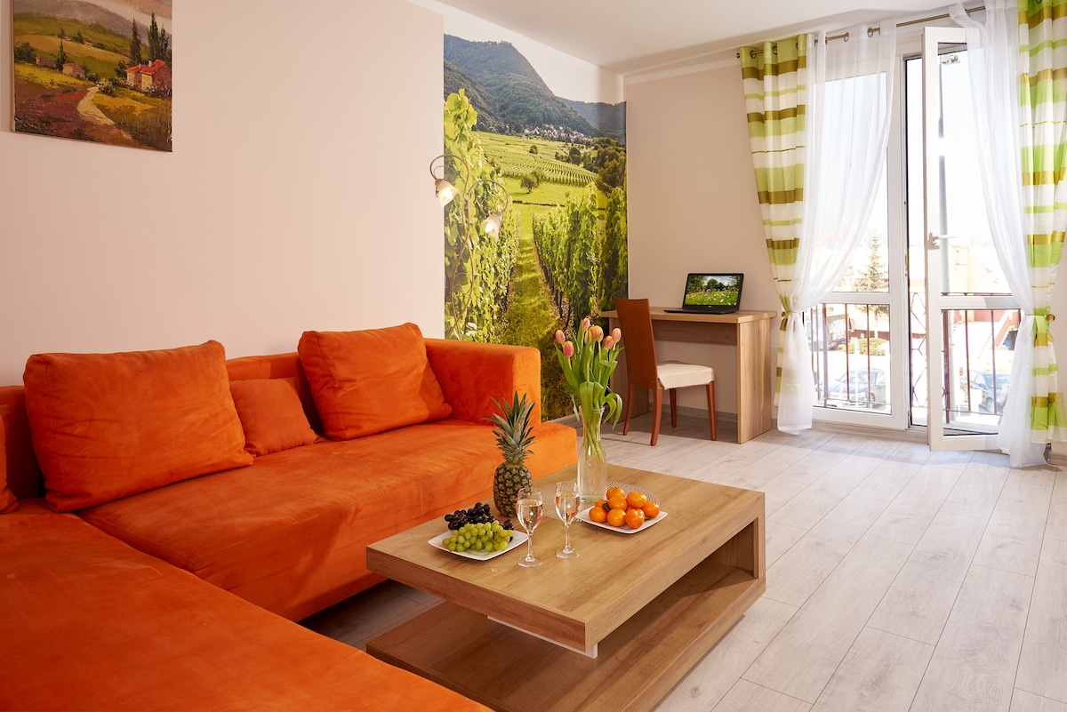 Questo appartamento unico occupa l'attico di un edificio storico, che fa parte di edifici rurali. Ci sono 80 mq con ingresso indipendente. L'appartamento comprende un ampio soggiorno con un angolo per bambini, 2 camere da letto, una cucina completamente attrezzata, una sala da pranzo con un grande tavolo e un bagno. Su richiesta mettiamo a disposizione un seminterrato storico dove è possibile trascorrere una bella serata vicino al caminetto e un buon bicchiere di vino. Ti preghiamo di segnalare il desiderio di utilizzare il seminterrato dopo la prenotazione o all'arrivo.