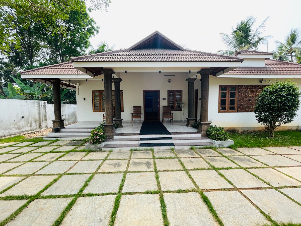 Benvenuti nella nostra splendida casa sulla spiaggia tradizionale in stile Kerala 3BHK, situata a pochi passi dalle tranquille rive di Puthenthope. Circondato da palme da cocco ondeggianti e dal suono delle onde, questo tranquillo rifugio fonde il fascino del patrimonio con i comfort moderni, perfetto per famiglie, amici o chiunque voglia rilassarsi in riva al mare.