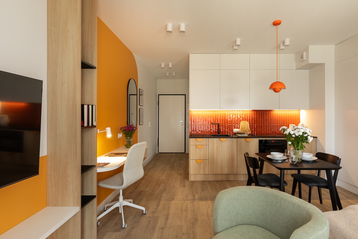 Ti invito in una terra unica che stimolerà i tuoi sensi e libererà la tua immaginazione per riposare profondamente. All'interno troverai comfort, spazio e arte, così come tutto ciò di cui hai bisogno durante il tuo soggiorno. Si tratta di un appartamento di alta qualità per un cliente esigente con un ampio terrazzo un comodo bagno e una camera da letto unica. L'appartamento è situato nella parte meglio collegata di Katowice, proprio accanto al circuito dei mezzi pubblici e al noleggio di biciclette e scooter, nonché vicino alla stazione ferroviaria.