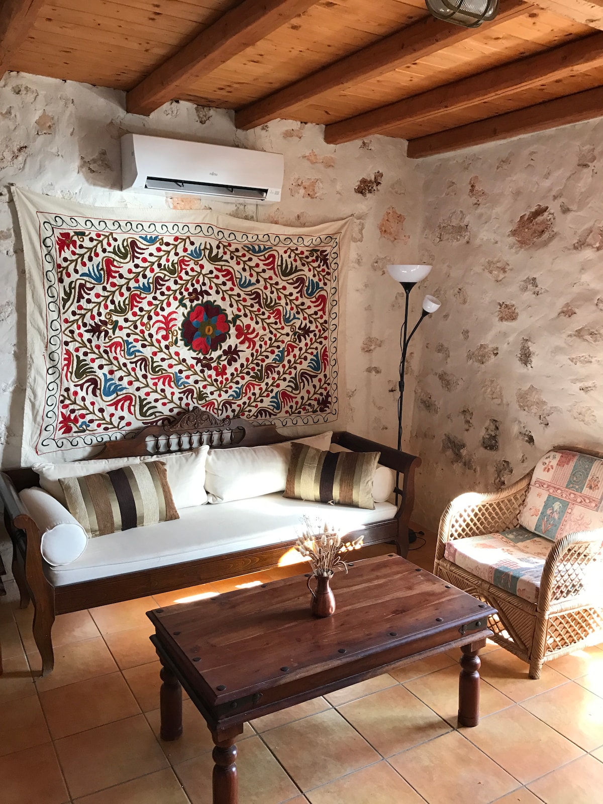 Si tratta di un monolocale in pietra a pochi minuti a piedi dalla spiaggia. Anche se si trova a breve distanza dal porto di Kioni, uno dei porti più popolari e belli dello Ionio, a pochi passi dall'altra parte, ti troverai in una zona rurale, dove gli agricoltori tengono i loro animali e raccolgono la terra con gli ulivi. È una controversia, ma è qui che si incontrano due stili di vita contraddittori. Ti aspetta un caloroso benvenuto, con prodotti di alta qualità, regali della terra di Ithacan.