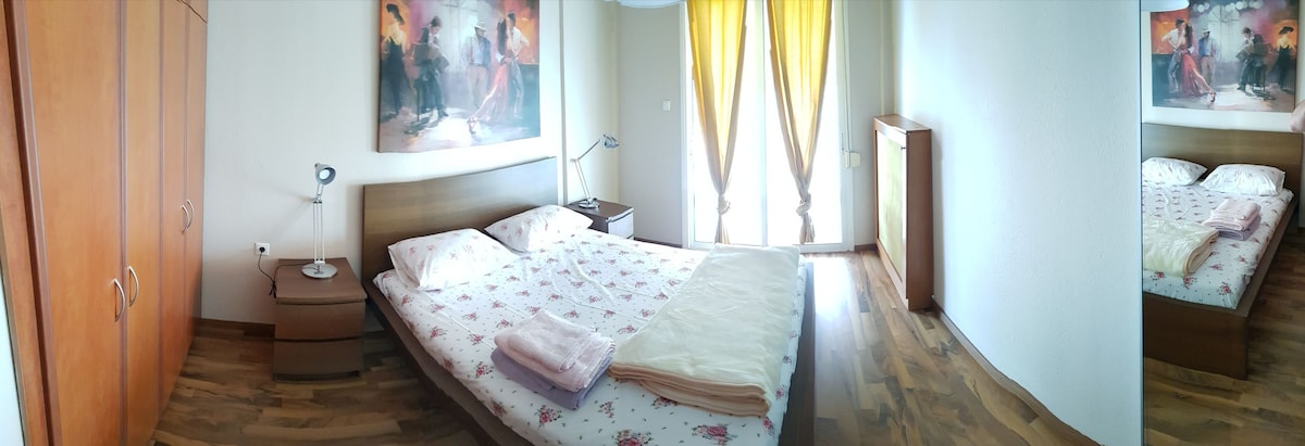 Un appartamento magnifico e luminoso con meravigliose viste sulla città e sulle montagne nel centro di Xanthi, a soli 2 minuti dalla piazza principale. C'è una zona giorno condivisa con un letto matrimoniale. Bagno e un ampio balcone dove gli ospiti possono godersi il sole. Possono ospitare fino a 4 persone. È nuovissimo, completamente rinnovato, pulito, moderno e funzionale. Ideale per famiglie, coppie e viaggiatori d'affari. Offre un accesso immediato all'intrattenimento, ai ristoranti, allo shopping e al parcheggio gratuito.