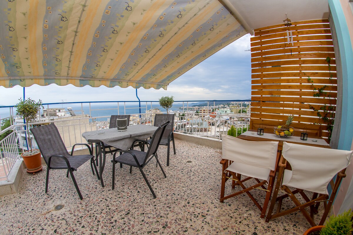 Goditi il tuo soggiorno nella città di Kavala in un appartamento con una grande veranda, con una vista mozzafiato su tutta la città e il porto a soli 3 minuti dal centro in auto. L'appartamento si trova al 3° piano, l'ultimo del palazzo, ed è di 52 mq. Ha un parcheggio privato coperto di 40 mq, il parcheggio è gratuito ed è solo per la tua auto.