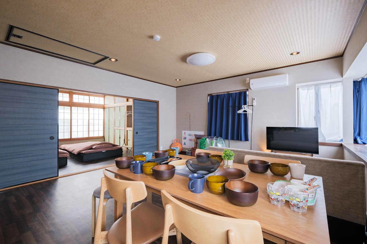 鷲宮駅まで、150m 最大8名宿泊 固定wifi アパート2階部分全体が宿泊場所です。 1階でヘアカット店が営業していますが、 夕方以降は営業しておらず一棟借りのように使えます。 ■予約時のご注意点 ①予約する際、正確な宿泊人数で予約をお願いします。 人数分の布団、リネン、アメニティしか用意されていません。 ②アンテナの調子が悪く、地上デジタルTVの視聴ができません。 youtubeは視聴可能です。 ■滞在時のご注意事項 夜21時以降、騒がしくすることはご遠慮下さい。 駅が近いため、電車通過音が聞こえることがあります。 音に敏感な方は、気になる可能性があります。 【最寄り駅】 東武伊勢崎線 鷲宮駅(わしのみやえき)徒歩2分 スーパーマーケット カスミ:徒歩1分 駄菓子屋:徒歩2分 カフェ:徒歩2分 らき☆すたファン会員制飲食店:徒歩2分 クリエイト薬局 久喜鷲宮店:徒歩5分 ■その他特記事項 防虫対策には注意しておりますが、害虫が発生した際には備え付けの殺虫剤でご対応をお願いしています。 ■届出番号 M110056039号