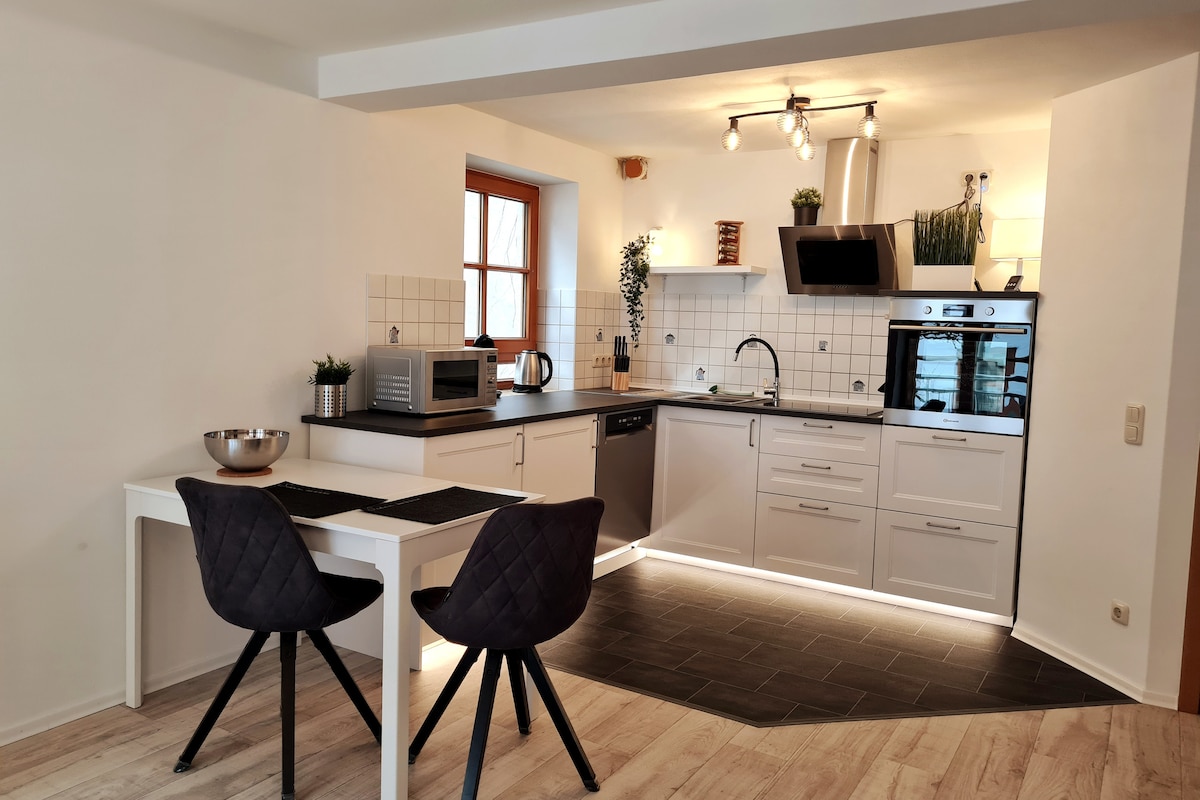 "Piccolo ma bello" - questo si adatta perfettamente al nostro nuovo appartamento di 32 mq. Nell'appartamento non ti manca nulla. Puoi sederti e rilassarti. L'appartamento dispone di una cucina completamente attrezzata, un tavolo da pranzo con sedie e un letto matrimoniale. C'è spazio per un lettino per un bambino. Il bagno separato è dotato di doccia a livello del pavimento, lavandino e servizi igienici. Se avete bisogno di una lavatrice, non esitate a contattarci.