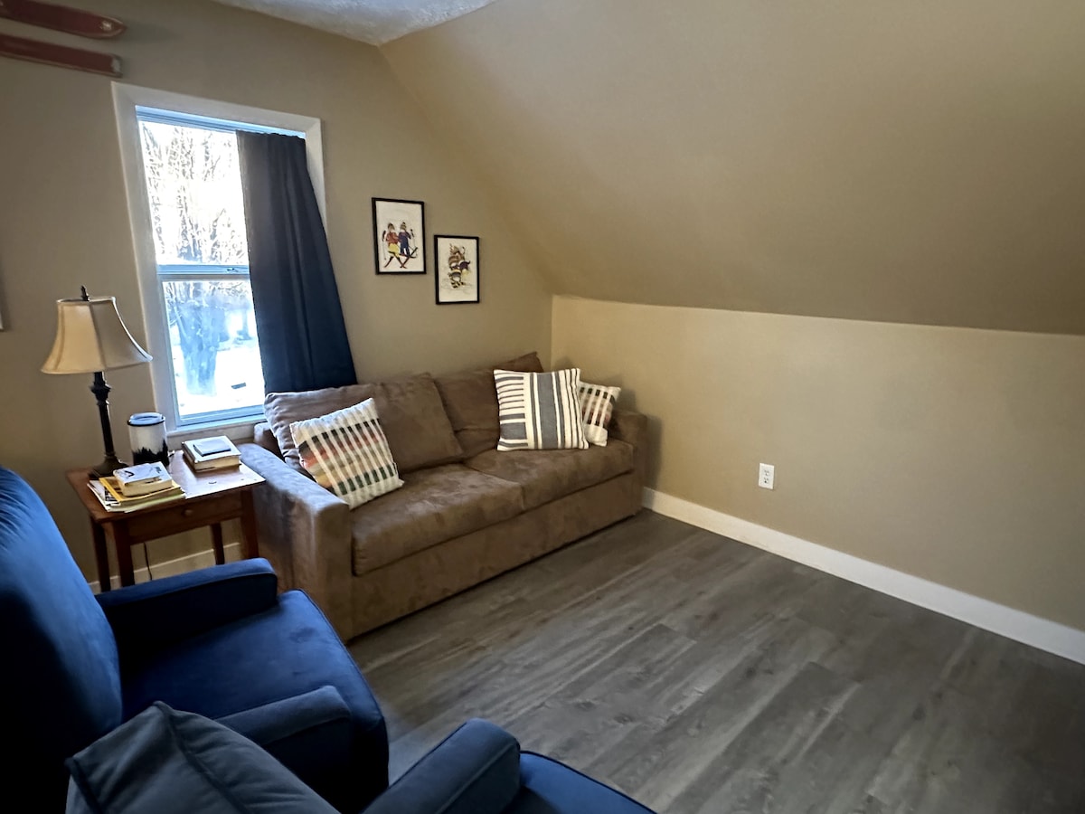 A soli 15-20 minuti di auto da Sugarloaf e a 3 minuti dal centro storico di Kingfield, questo chalet offre una pausa tranquilla e privata dopo una giornata intensa in montagna. Il nostro chalet ecologico con 2 camere da letto e 1 bagno è nascosto dalla strada, con vicini distanti e wifi veloce. Puoi essere circondato dalla natura ma a pochi minuti da incantevoli ristoranti, negozi locali, alimentari, stazioni di servizio e tantissimi sentieri, fiumi e laghi per ciaspolate, sci di fondo, motoslitte, escursioni, rifugi, mountain bike, kayak e altro ancora.