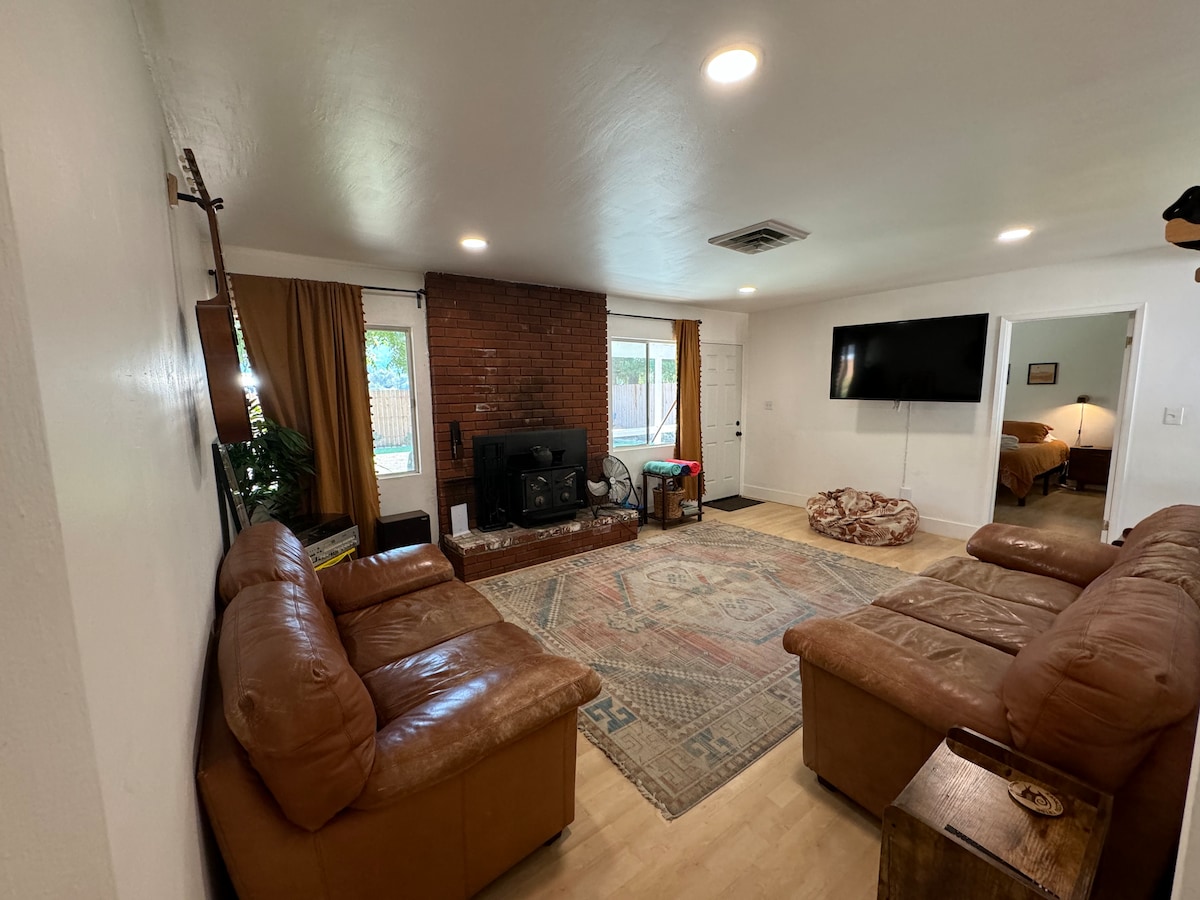 Dicono che la posizione sia tutto, e questa casa si trova nella posizione migliore. Siamo a soli 100 metri dall'accesso pubblico al fiume e a 1,3 km dal centro di Kernville. Questo è un ranch pulito e adatto alle famiglie, a pochi passi dal fiume, dalla città storica, dal rodeo e dalla pista ciclabile. Il fiume è così vicino che puoi sentire l'acqua che scorre. Goditi le sedie Adirondack nel cortile (con un tavolo/focolare a propano) per iniziare la giornata o per rilassarti e goderti i suoni del fiume.