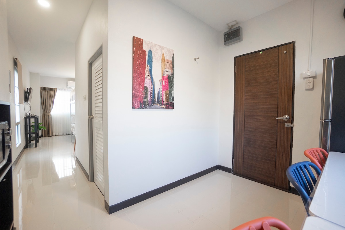 Spazioso appartamento con 2 camere da letto al 4° piano, ognuna con il proprio bagno privato e un accogliente soggiorno per rilassarsi. Ti ricordiamo che non c'è l'ascensore: per accedere all'unità è necessario salire le scale. Perfetto per famiglie, amici o viaggiatori d'affari che cercano comfort e privacy vicino all'aeroporto di Suvarnabhumi (BKK)