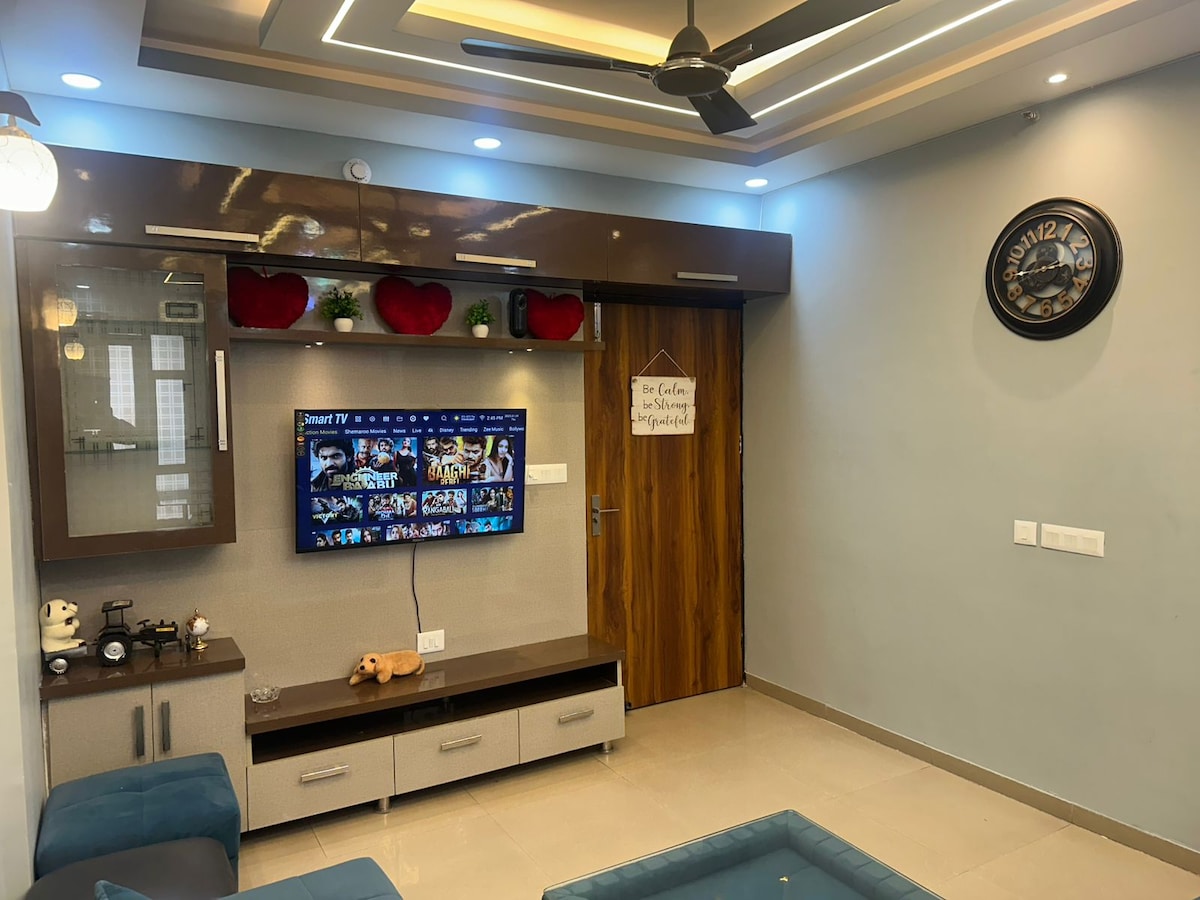 Questo spazio unico ha uno stile tutto suo. La splendida architettura e il design della suite ti offriranno il lusso che meriti. Si trova a pochi passi dal centro commerciale Vvip Style Mall, dove ci sono i cinema PVR e molti altri ristoranti. Qui puoi usare Swiggy, Blinkit, Zepto e Zomato. Un televisore da 50 pollici per guardare Netflix e rilassarsi. In cucina sono disponibili un piano cottura a induzione e un bollitore elettrico. Splendida vista dal balcone.