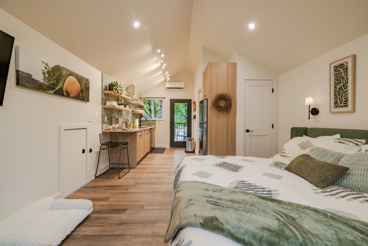 Welcome to Gateway Rentals (grmrentals)! This newly renovated retreat with vaulted ceilings offers the perfect blend of comfort and style. Relax on the outdoor deck or unwind indoors in a cozy space designed for rest. The full kitchenette is stocked with essentials, including an oven toaster, for easy meals. Sleep soundly on the plush King Casper mattress, then wake up refreshed with a Keurig brew or French press coffee. A stay here promises comfort, convenience, and relaxation.