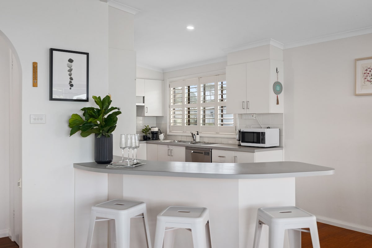 La tua vacanza di lusso definitiva. La tua casa lontano da casa. La nostra pensione di nuova costruzione si trova a Mollymook Beach e offre tutto il necessario per un rilassante rifugio sulla costa. Situata in una strada tranquilla e silenziosa, a soli 4 minuti di auto dalla bellissima spiaggia di Mollymook e a 3 minuti di auto dai negozi, ristoranti e caffetterie di Tallwood Avenue. Questa splendida proprietà è ricca di spazi meravigliosi, dagli interni caldi, allo splendido focolare all'aperto, alla terrazza anteriore e alla doccia esterna.