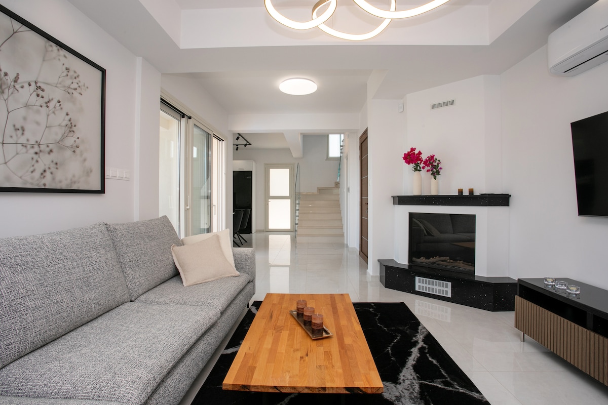 Ti diamo il benvenuto a Nireas Villa! Nireo (in greco: Νηρεύς) era secondo la mitologia greca un Titano e il figlio maggiore di Ponto (il Mare) e Gaia (la Terra). Viveva nel Mar Egeo con le sue 50 figlie, le Nereidi. Era l'unico Titano/Dio che poteva trasformarsi in qualsiasi cosa. Moderna villa vacanze minimalista vicino alla costa di Pafo, che diffonde l'aura delle Cicladi, unita alla cultura cipriota, con un'architettura interna ed esterna unica.
