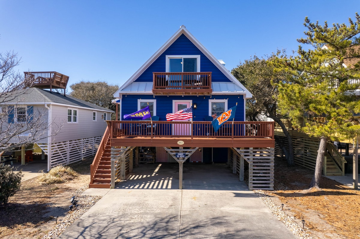 4 minuti a piedi dalla spiaggia! Ammira il mare all'orizzonte dalla terrazza prendisole, dove potrai gustare il caffè mattutino e ammirare il sole sorgere. Situato a Kill Devil Hills, a pochi minuti da negozi di alimentari, ristoranti e molte attività all'aperto, tra cui il Wright Memorial. Lo spazio 3 comode camere da letto, 2 bagni completi Cucina completamente attrezzata e Wi-Fi veloce Vista dell'alba dal ponte superiore Perché ti piacerà Facile accesso alla spiaggia - 4 minuti a piedi A pochi minuti da ristoranti, negozi di alimentari e attrazioni