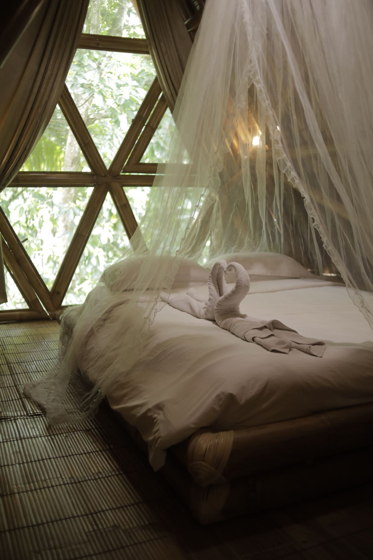 Bungalow tropicale in bambù con vista sulla piscina