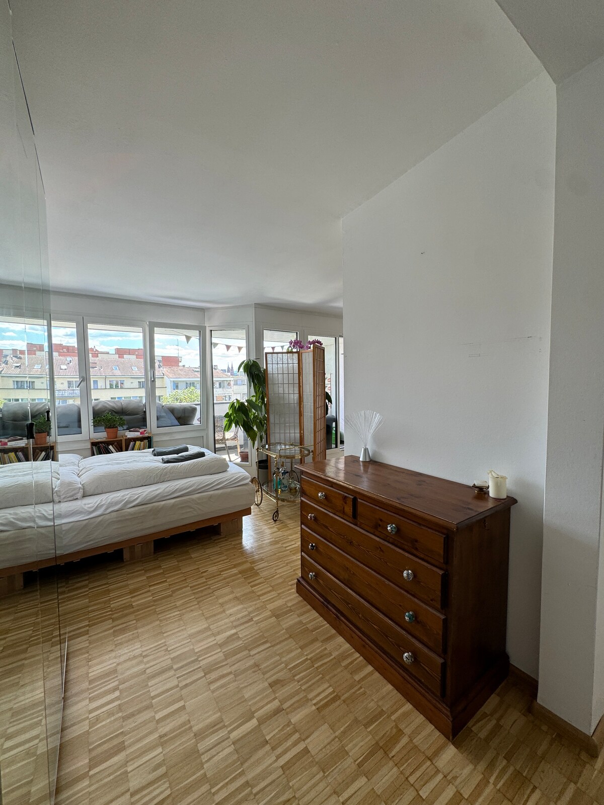 Feel like at home in this modern studio right in the center of Basel. 24h self-check-in. Free public transport. Tram stop near the house, 5 minute walk from main station Basel SBB; 15min from airport by bus. 45 m2 studio apartment with queen-size bed (1.60mx 2.00m), coffee maker, cooking facilities, oven, toaster, water heater, hair dryer, iron, Smart-TV + Netflix, refrigerator, high speed wifi. Additional single bed (0.80m x 2.00m) in case of a booking for 3 guests.